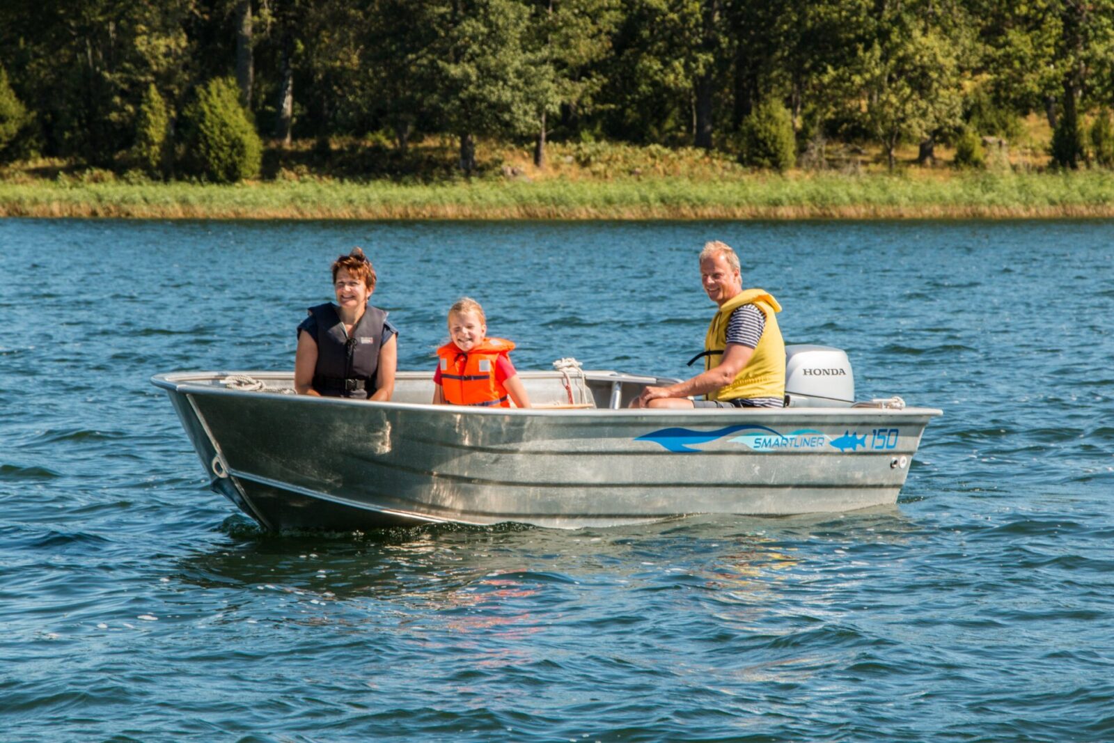 - Smartliner 150 – 4,50 x 1,94 m, 20 PS Honda-Motor, geeignet für bis zu 5 Personen