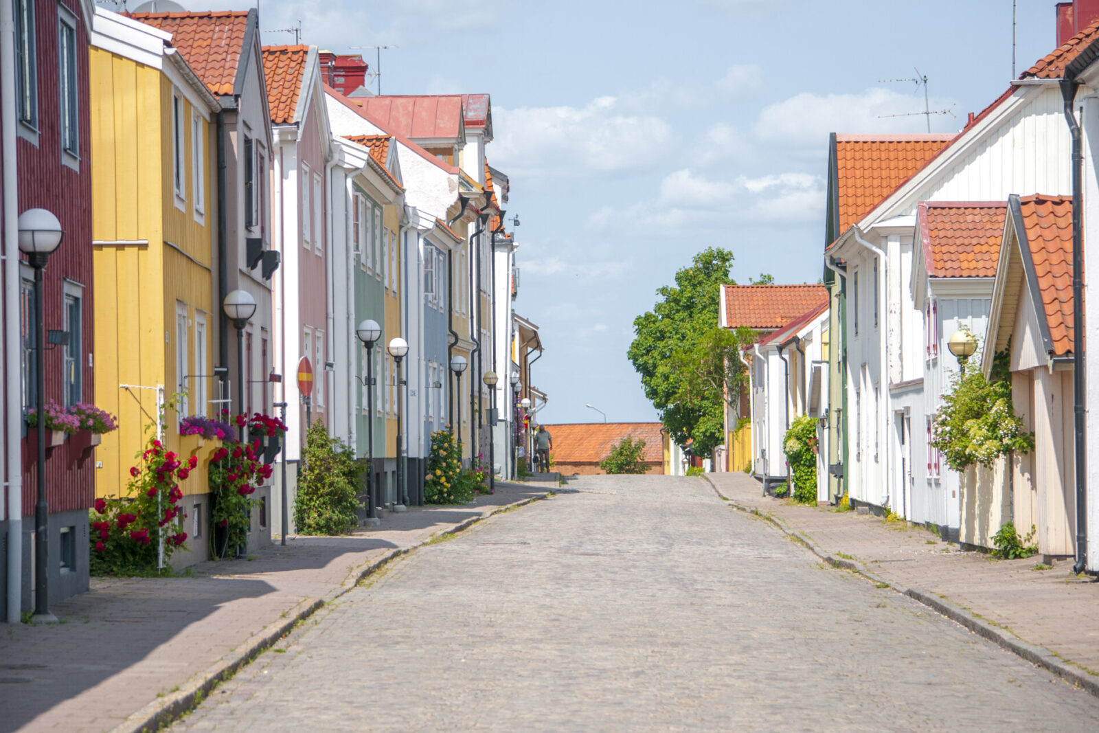 The Båtsmansstugorna cottages (low houses from the 1740s and later), situated in the middle of the city, where the military sailors and their families lived.